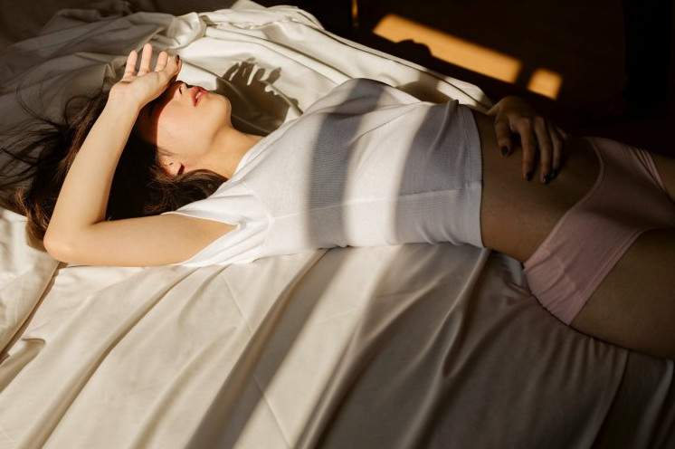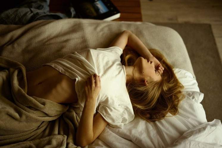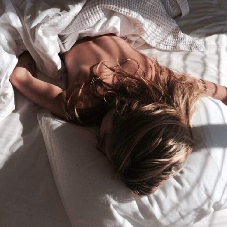 Девушка дремлет без одежки.