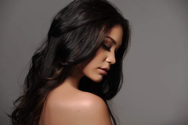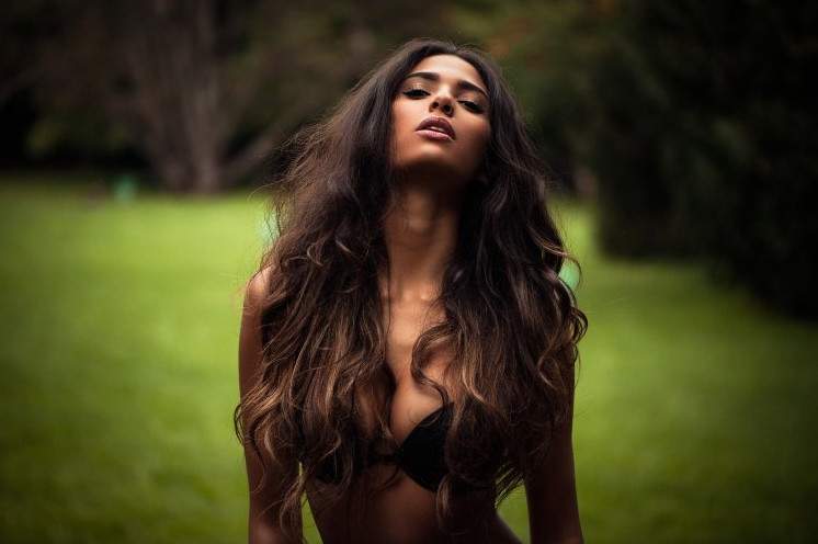 Черноволосая модель.