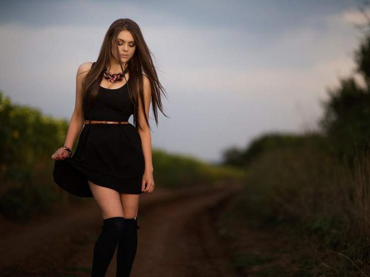 Красивая девушка в черном прекрасное платье.
