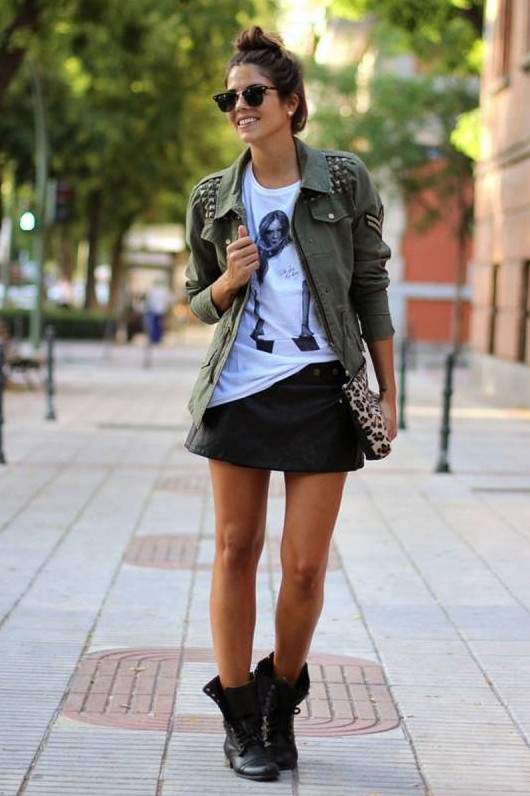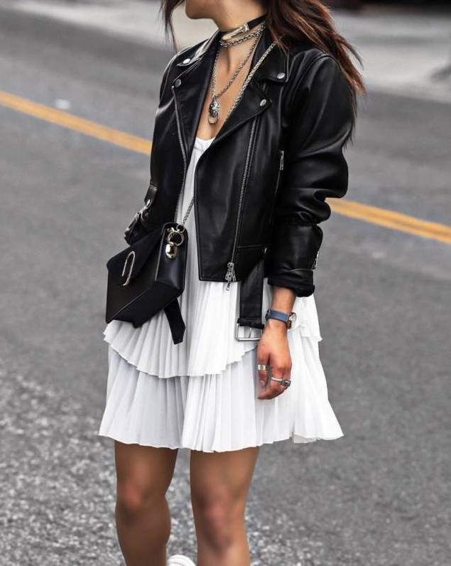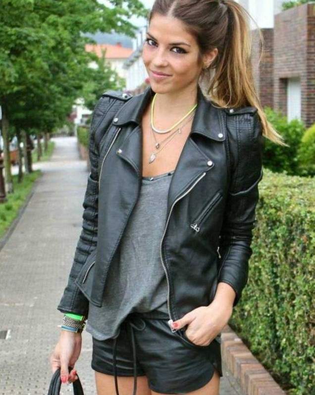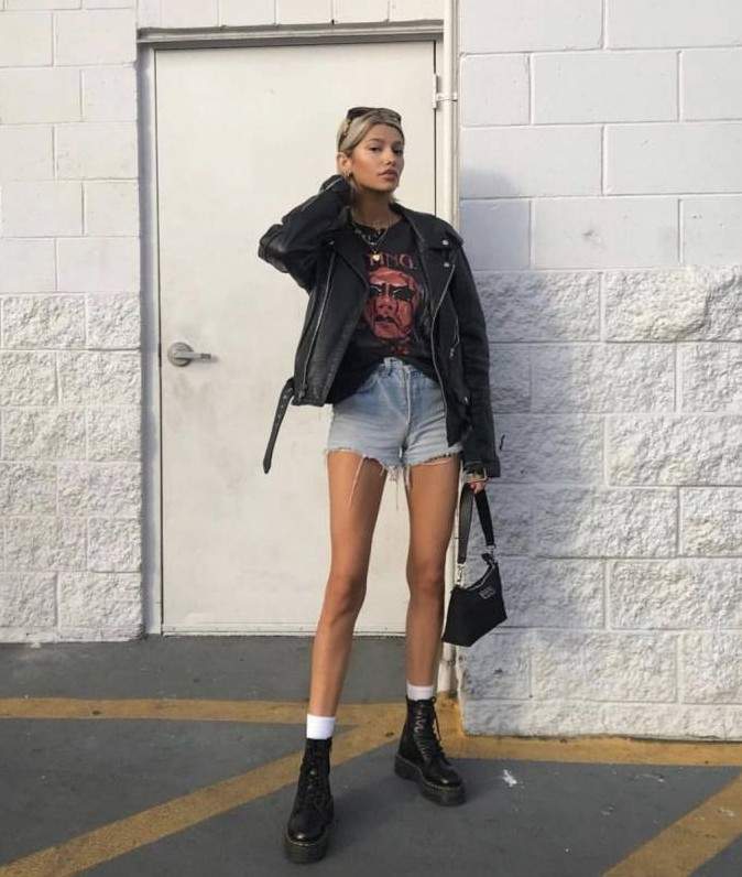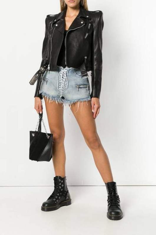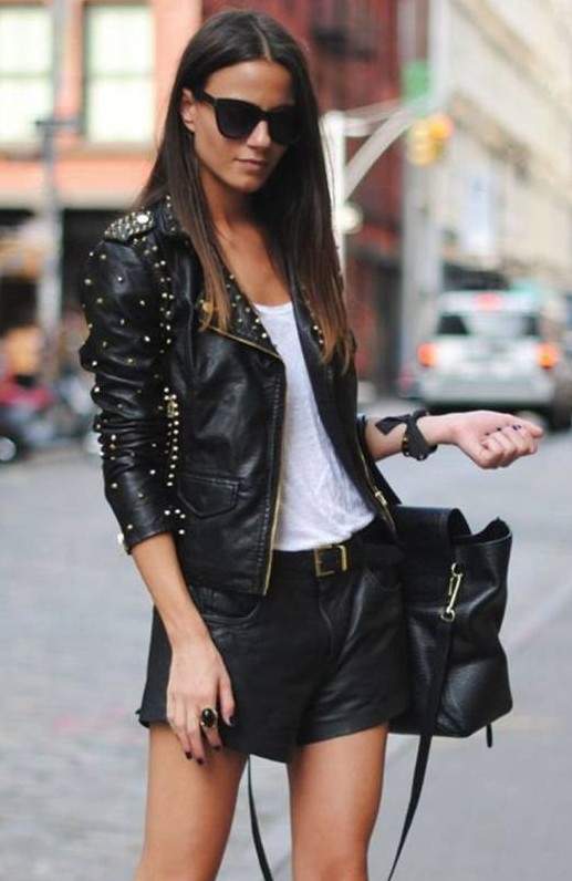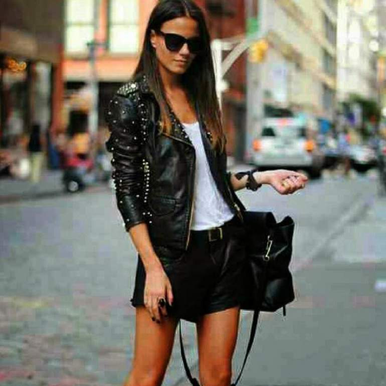 Шорты с кожаной курткой.