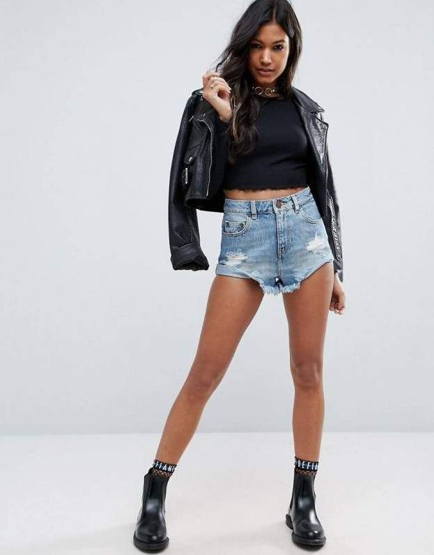 Образы с джинсовыми шортами с высочайшей талией.