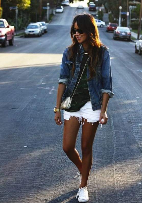 Образы с длинноватыми джинсовыми шортами.