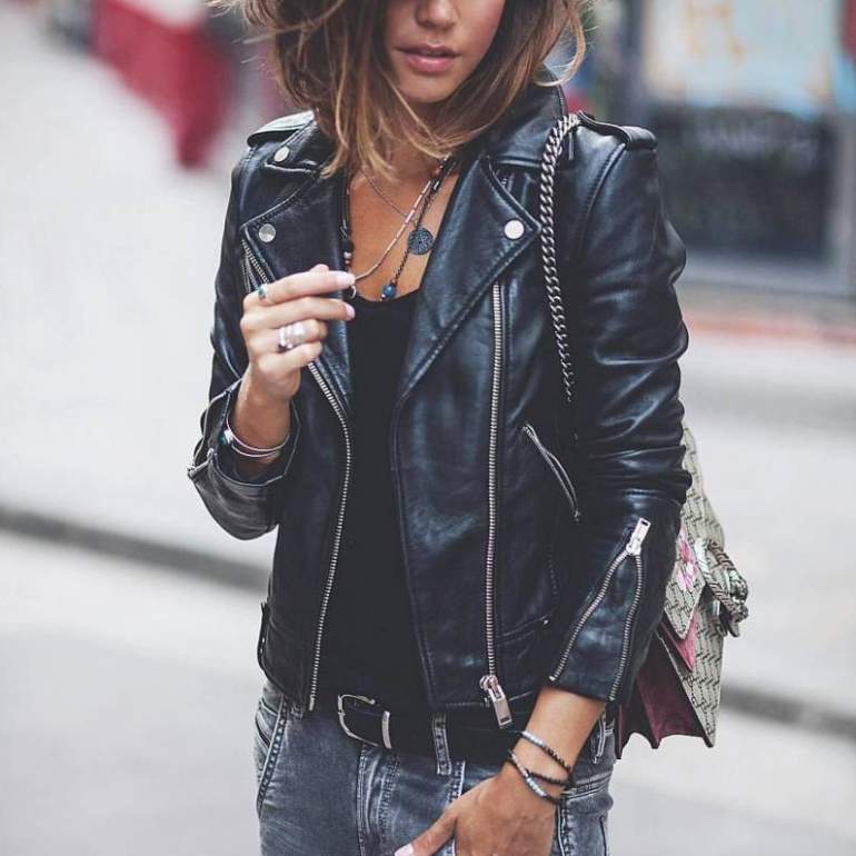 Рок гранж в одежде кожанка.