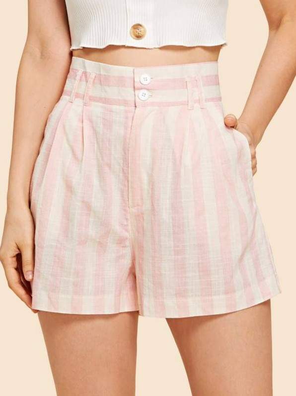 Шорты розово белоснежные в полоску.