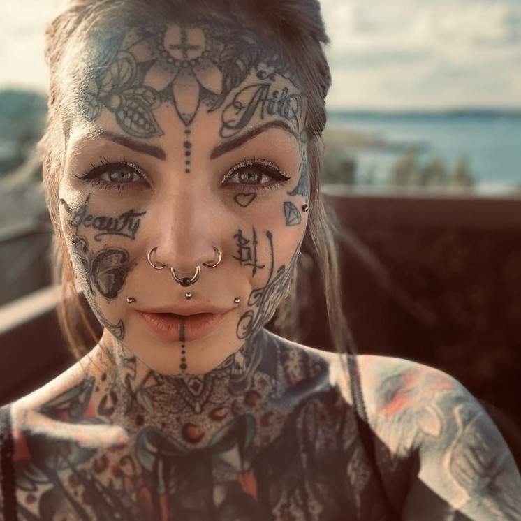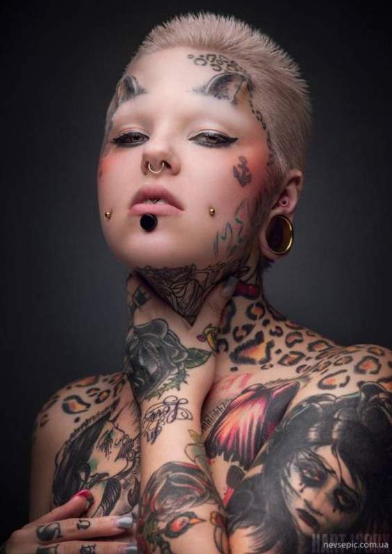 Тату на лице восхитительные женщины.