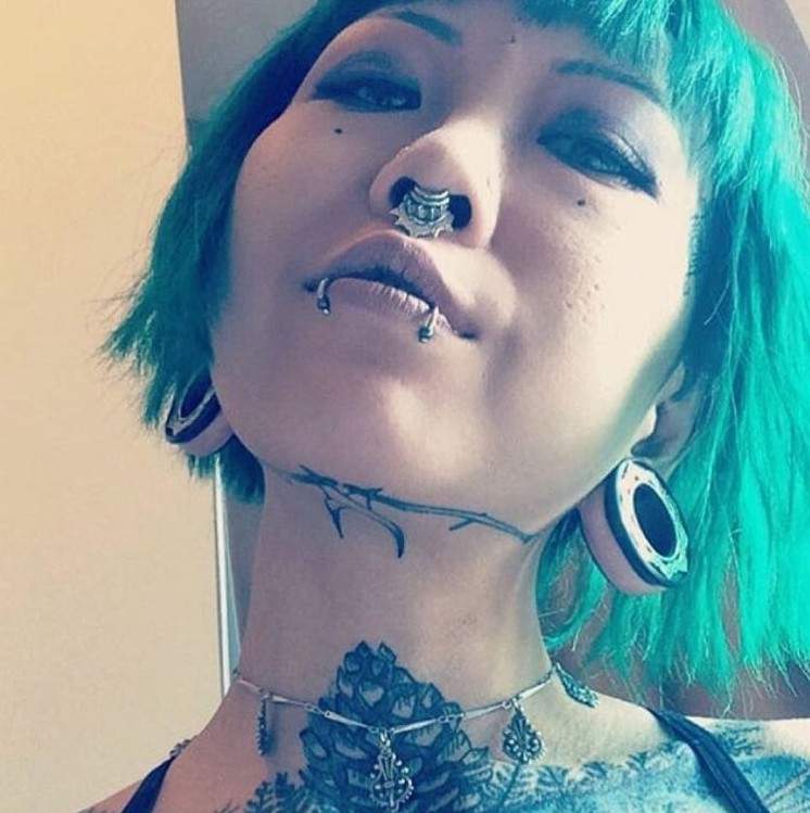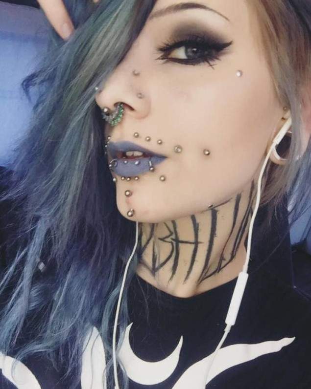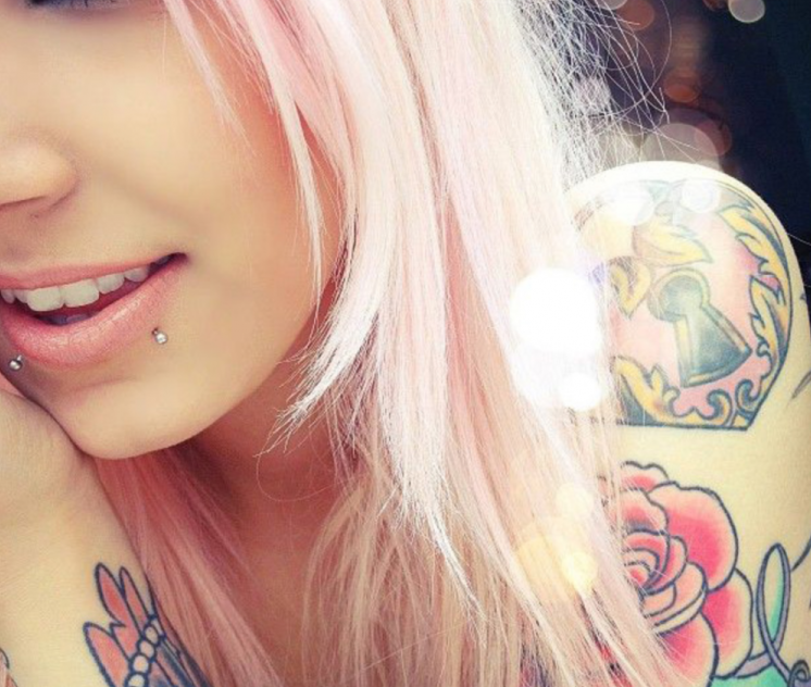 Пирсинг и тату у милых красивых женщин на лице.