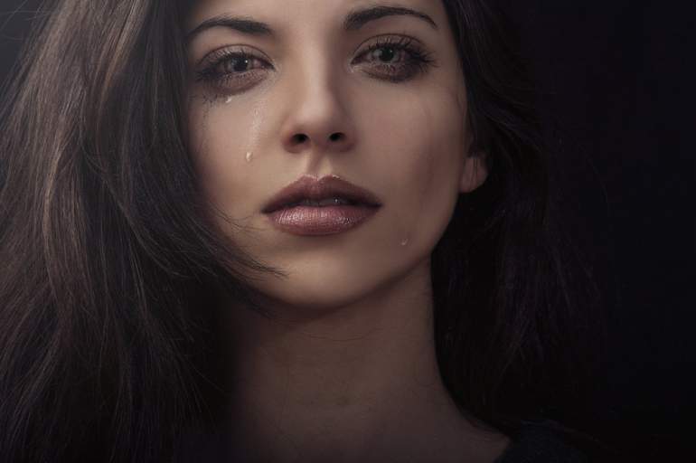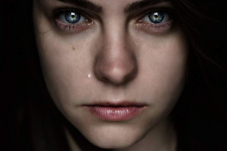 Слёзы на лице девушки.