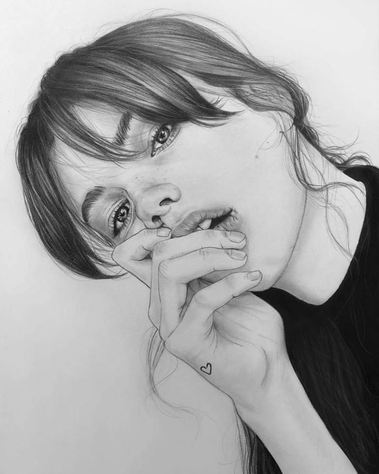Девушка красавица карандашом.
