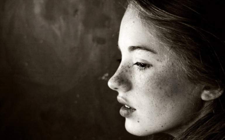 Грустное лицо девушки.