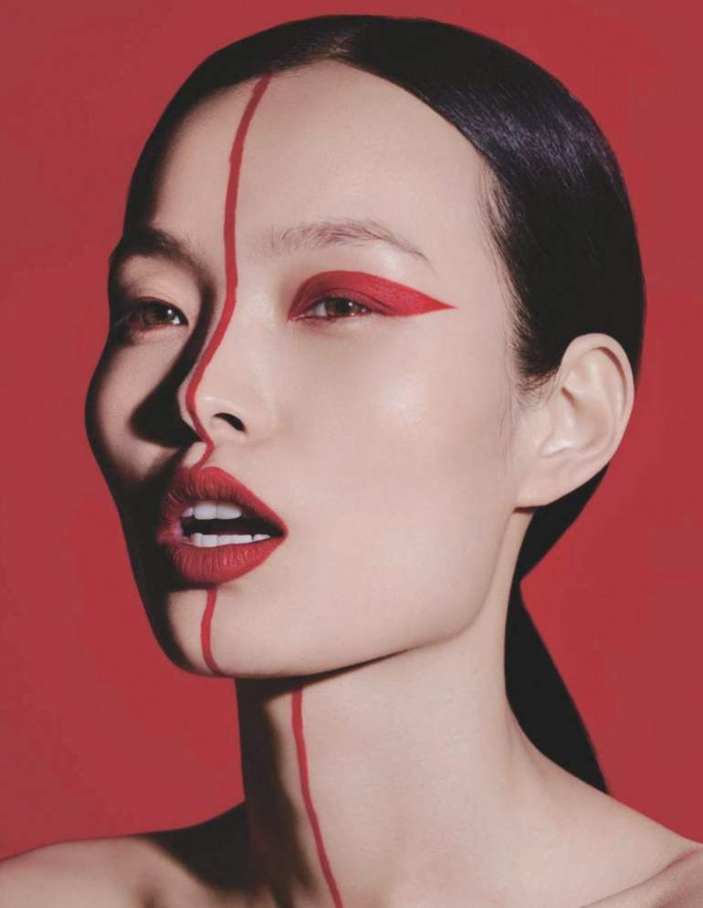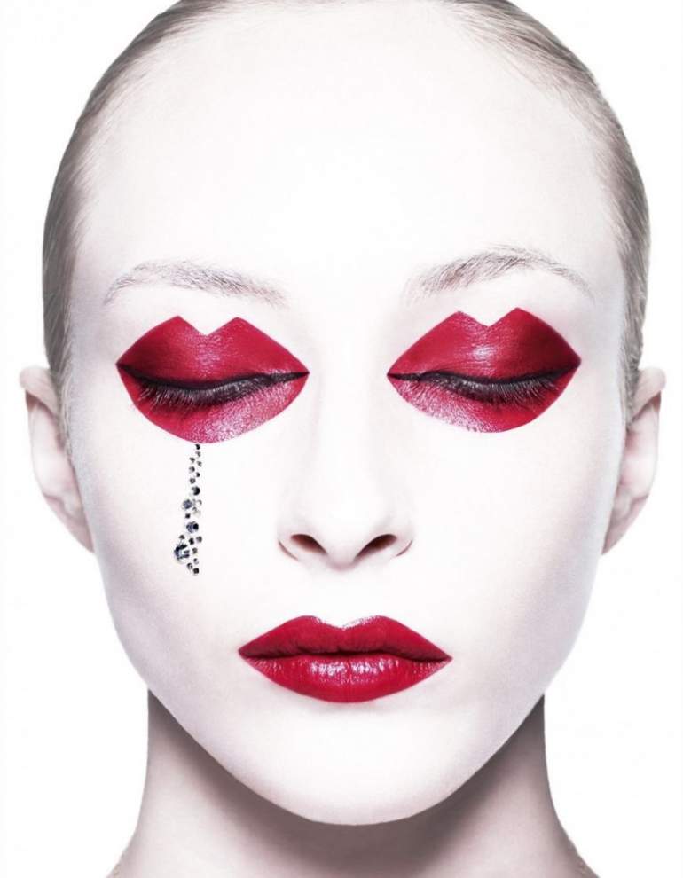 Мейкап с очень красными ресничками.