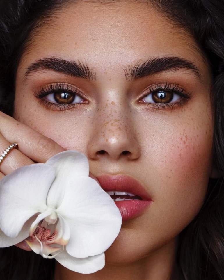 Девушка красавица с прекрасными ресничками и бровями.