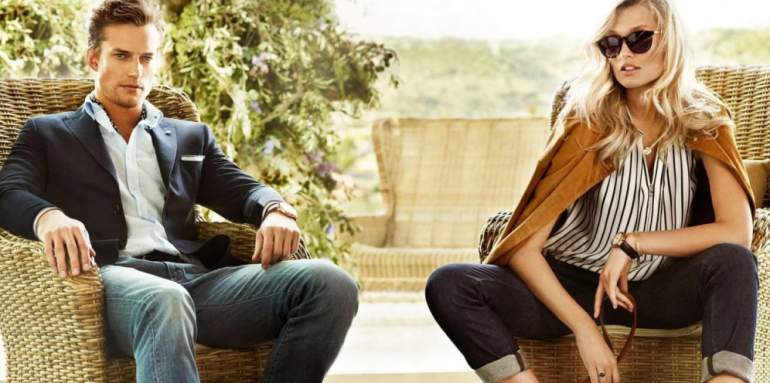 Мужская и женская одежда реклама.