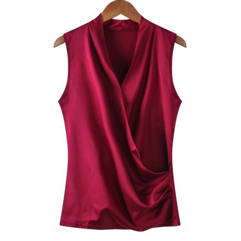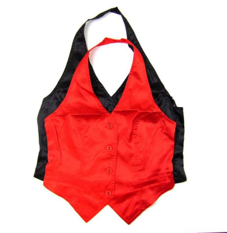 Очень красная атласная жилетка.