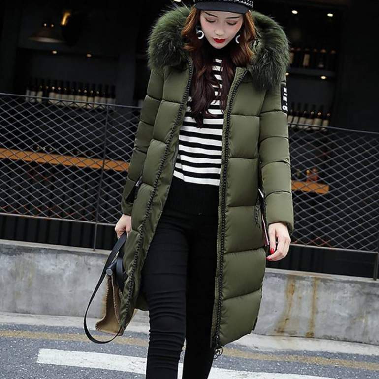 Длинный пуховик.