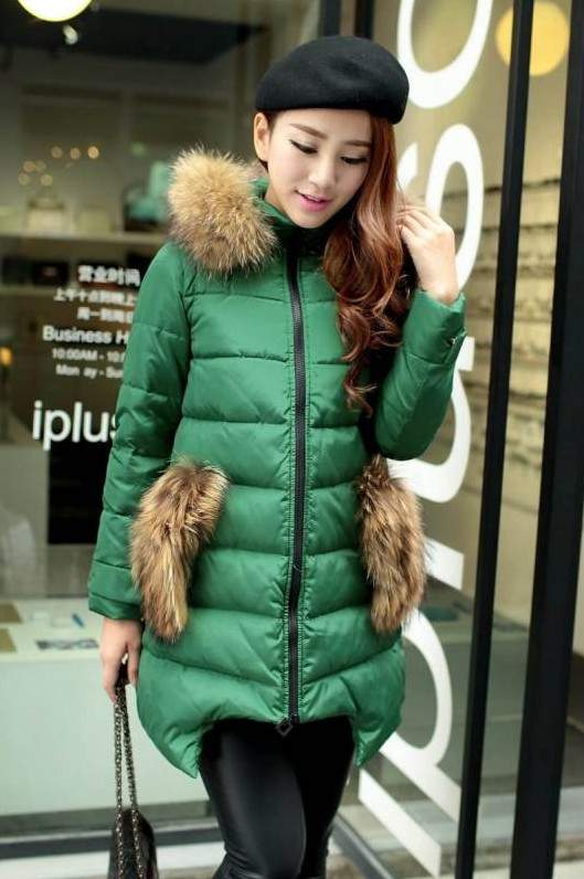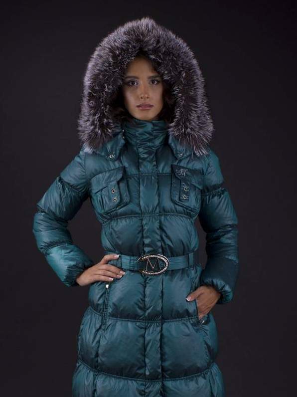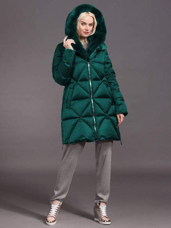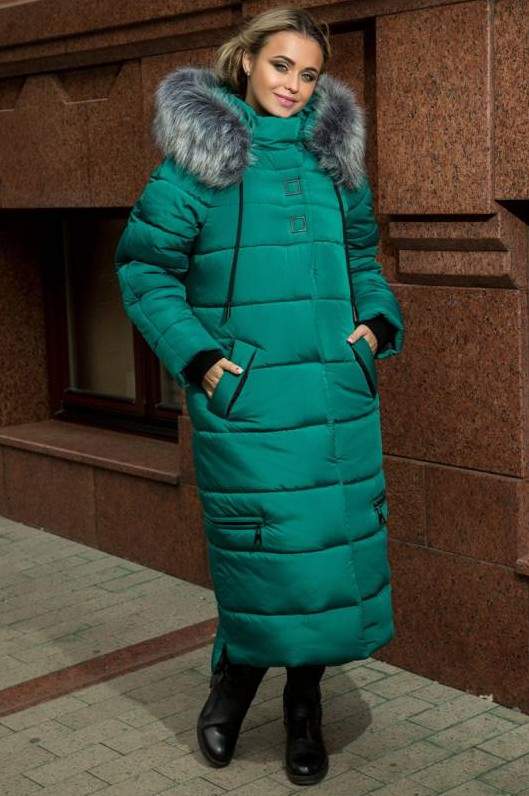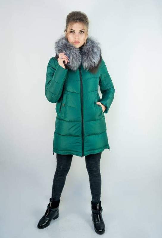 Изумрудный пуховик с мехом.