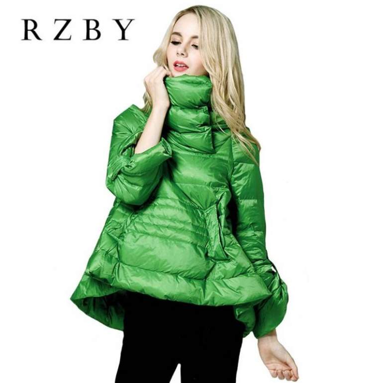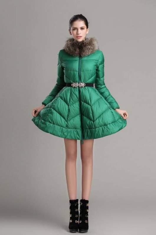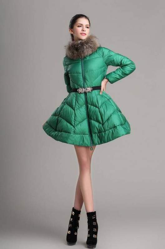 Пуховик с расклешенной юбкой.