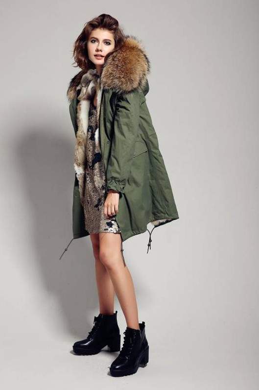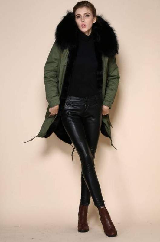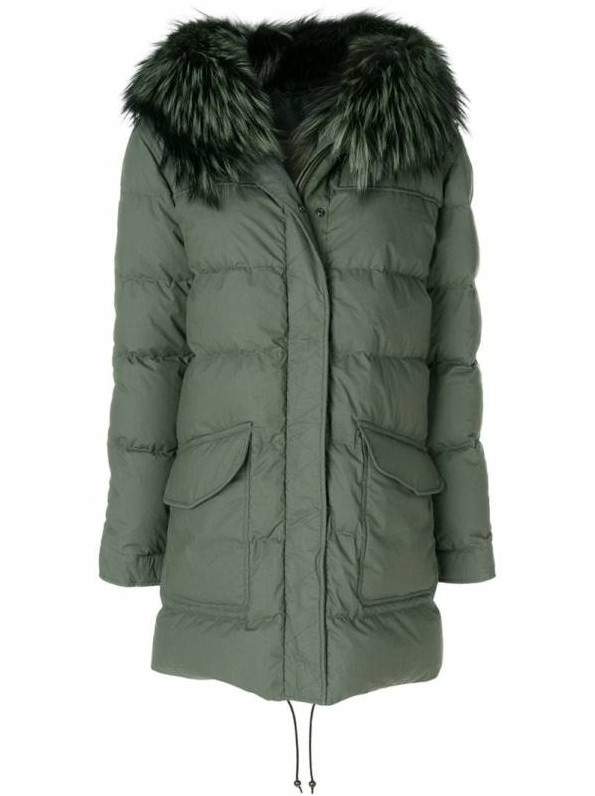 Зеленоватая парка с мехом.
