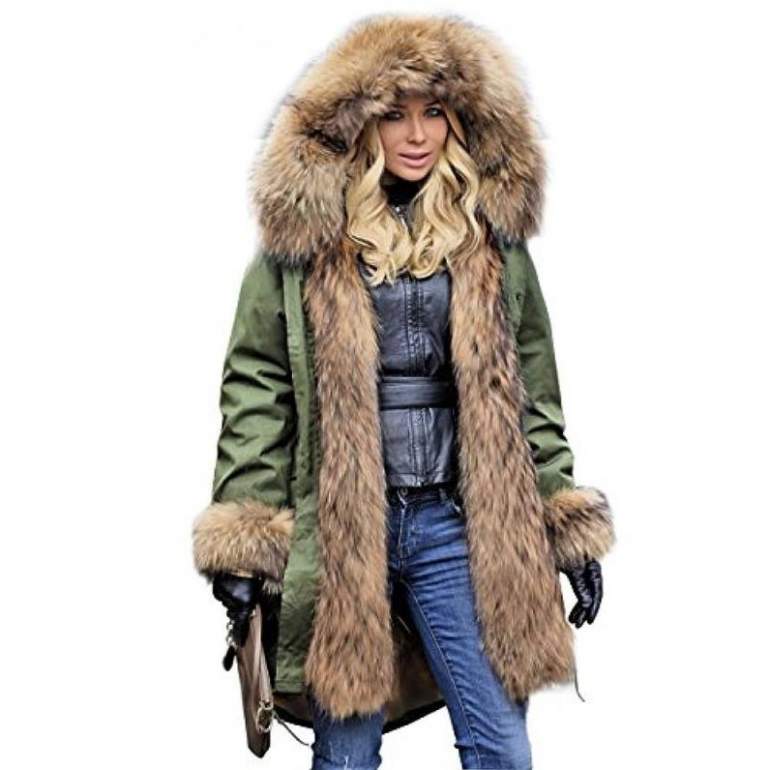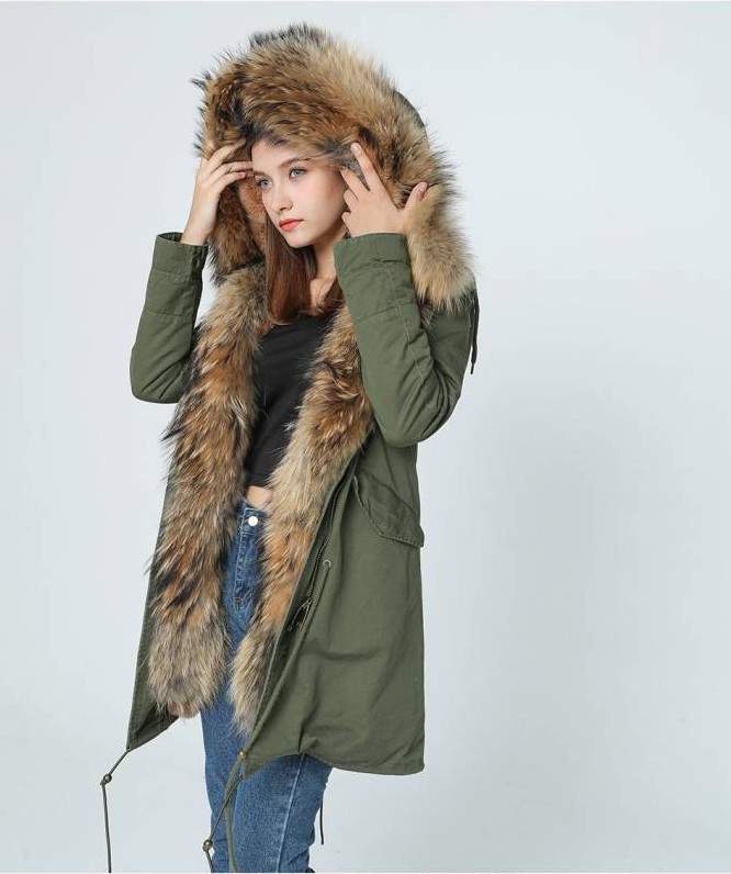 Парки зимние дамские с мехом енотах.