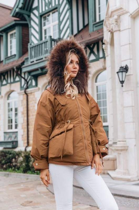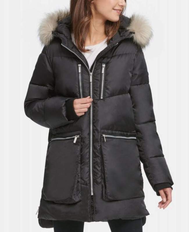 Faux-fur-Trim Hooded Puffer Coat DKNY.
