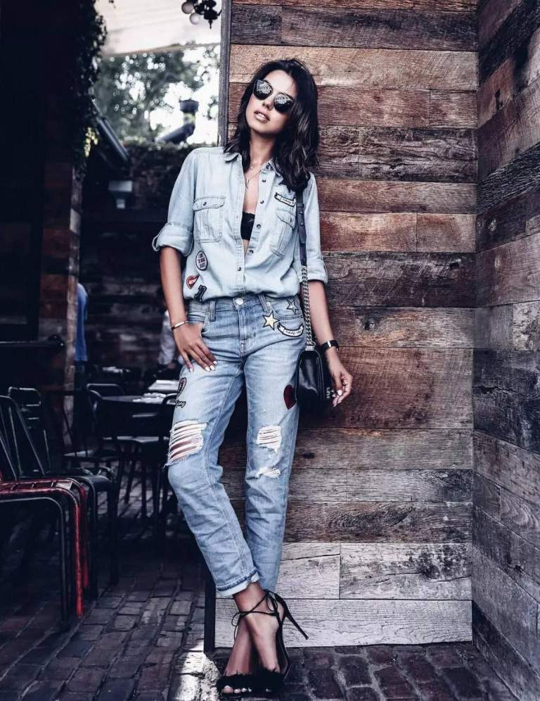 Блондинка в рваных джинсах.