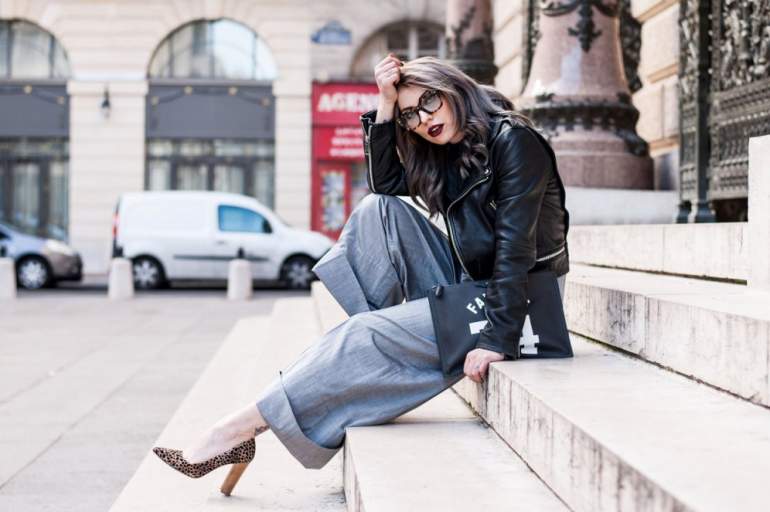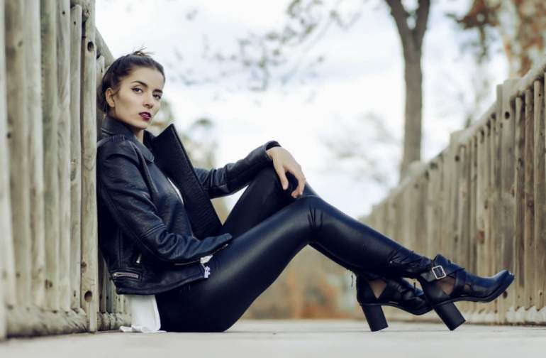 Девушка красавица в кожаной куртке.