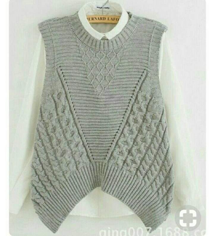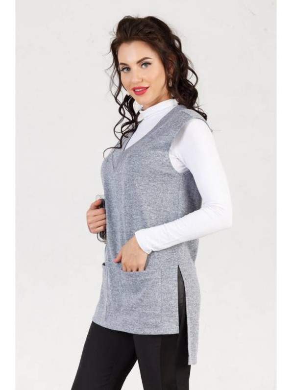 Сероватый жилет дамский вязаный.