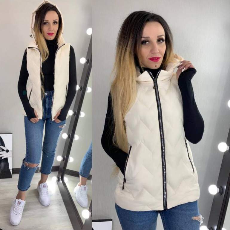 Белоснежный жилет на синтепоне с капюшоном.
