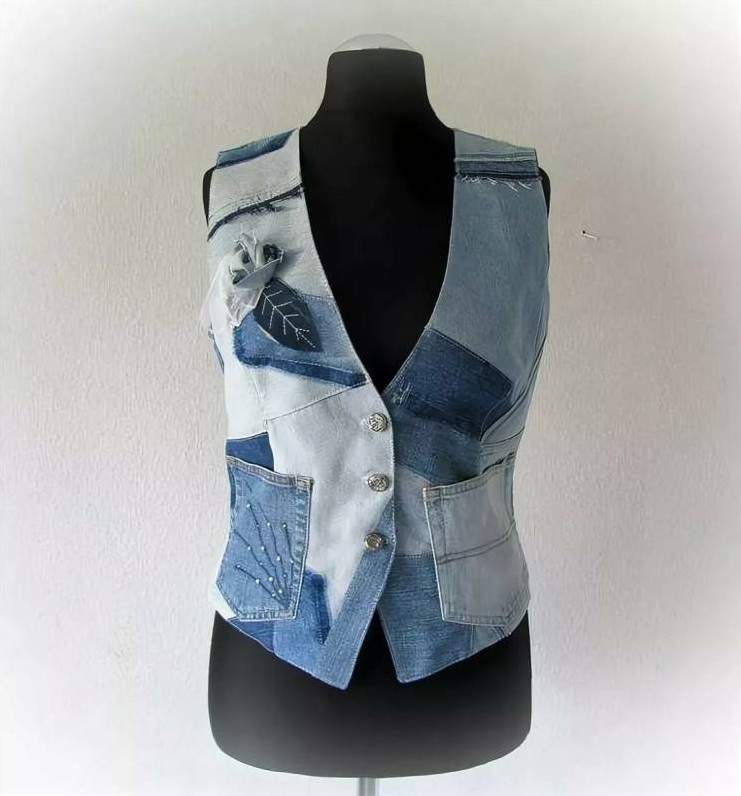 Лоскутный джинсовый жилет.