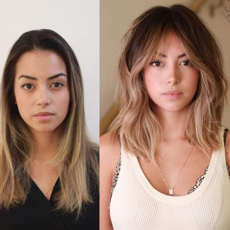 Стрижки до и после на средние волосы.