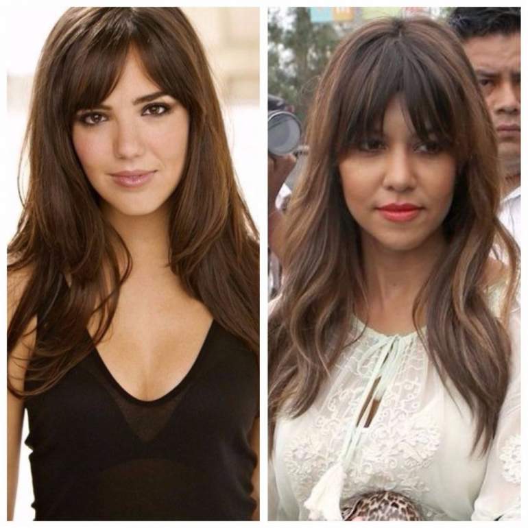 Длинноватая чёлка на длинные волосы.