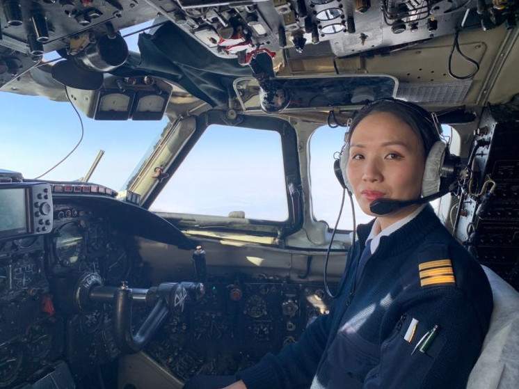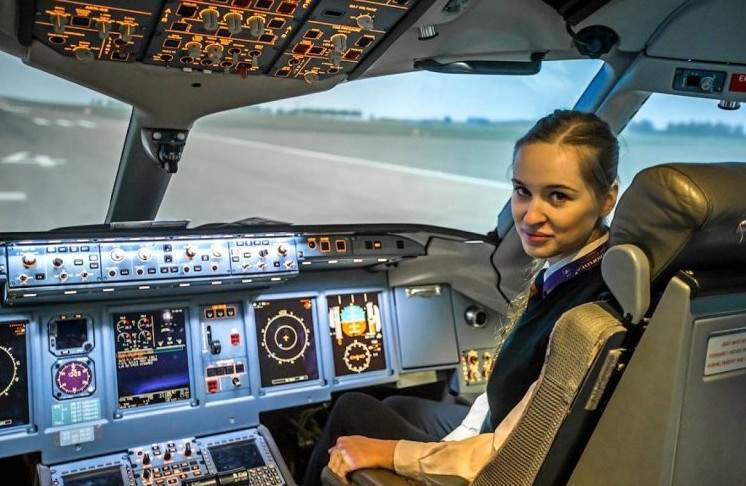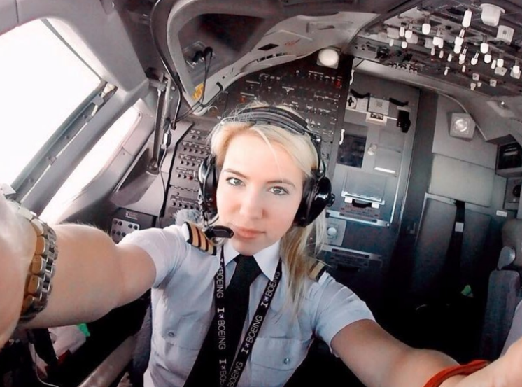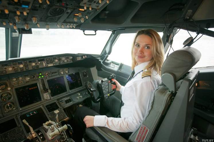 Девушка пилот самолета.