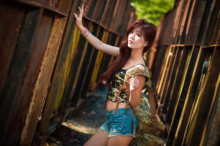 Красивые азиатские восхитительные женщины в шортах.