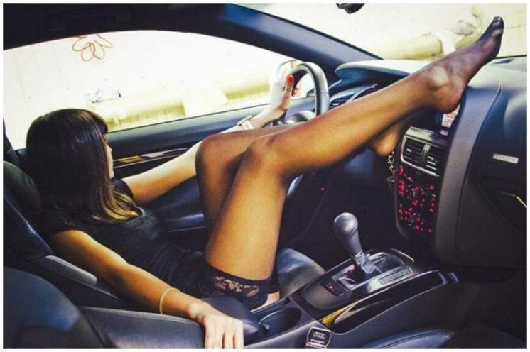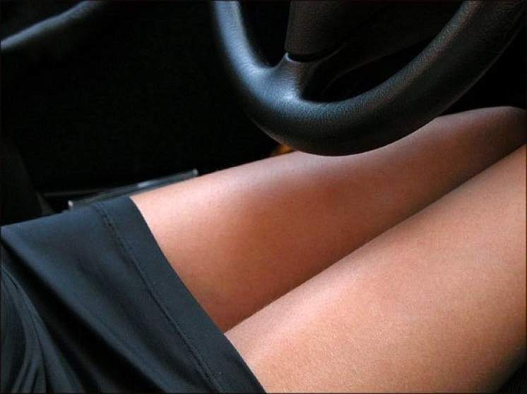 Дамские ноги за рулем авто.