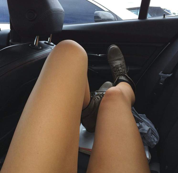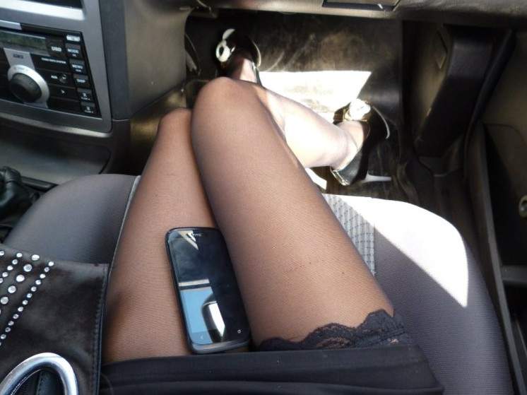 Дамские ноги в машине.