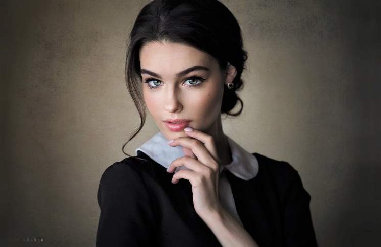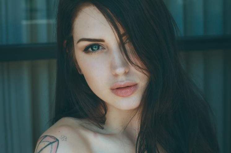 Девушка эротика с брюнеткой с зелеными глазами.