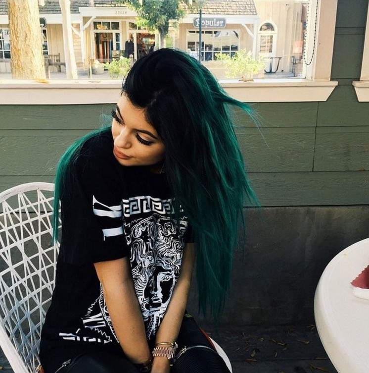 Кайли Дженнер с бирюзовыми волосами.