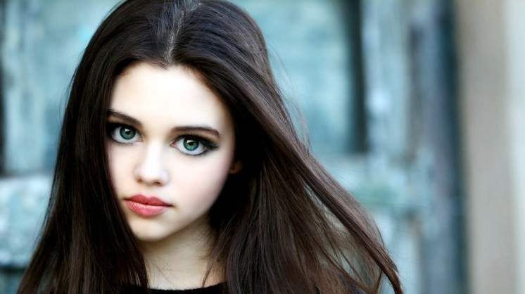 Темноволосая девушка с голубыми глазами.