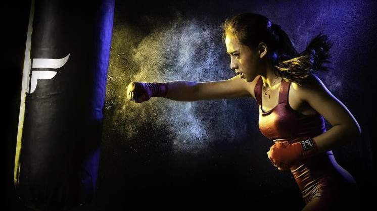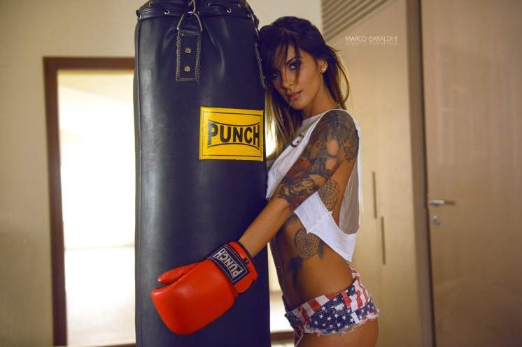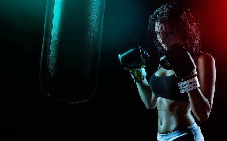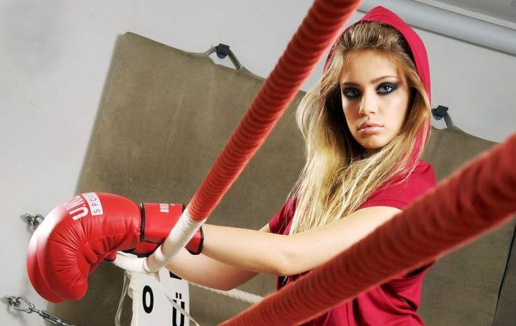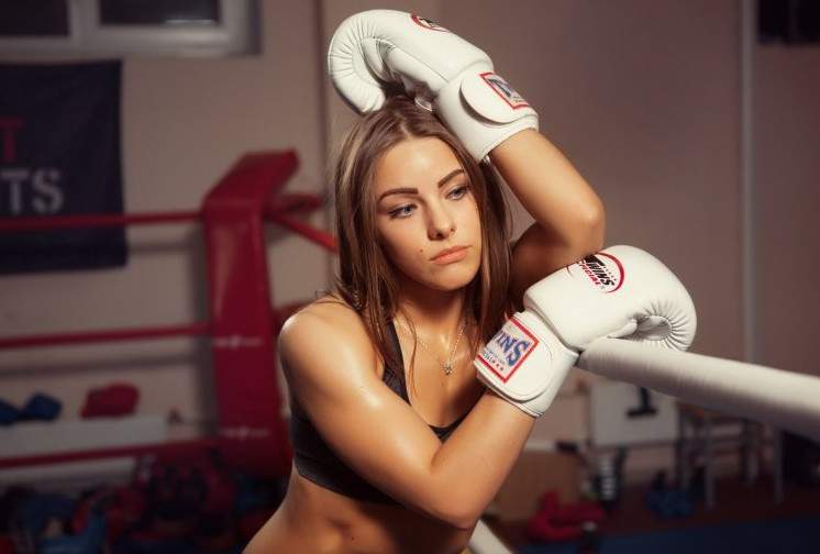 Девушка в боксерских перчатках.