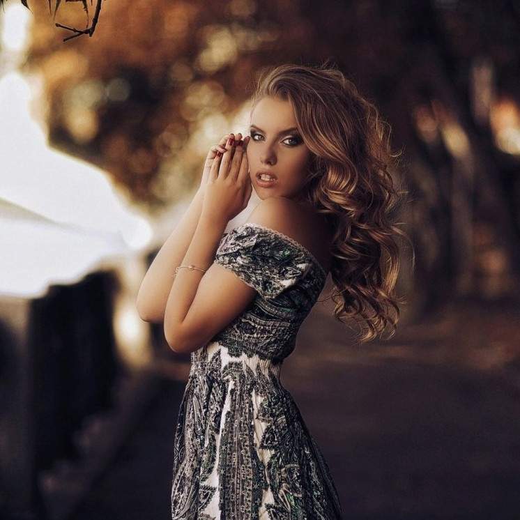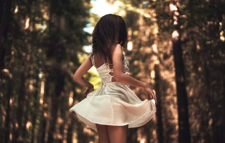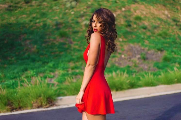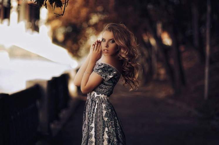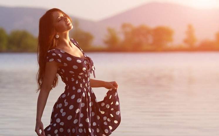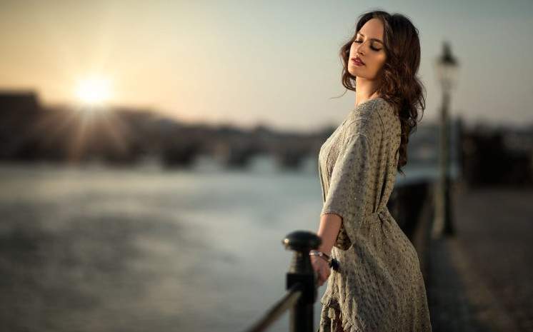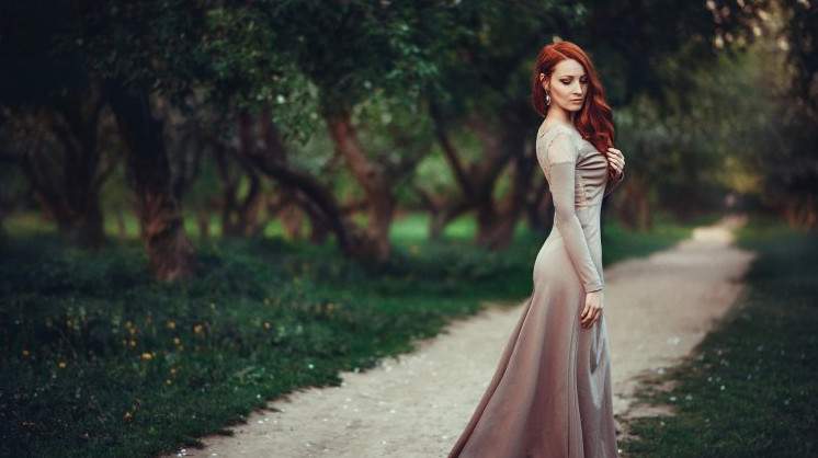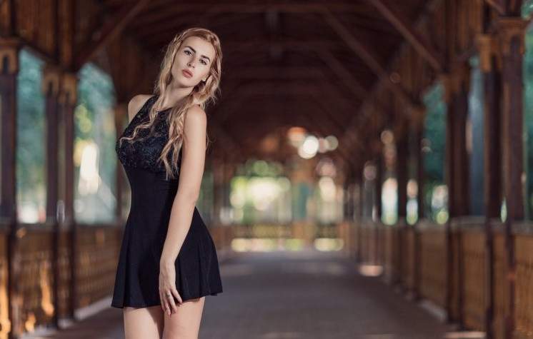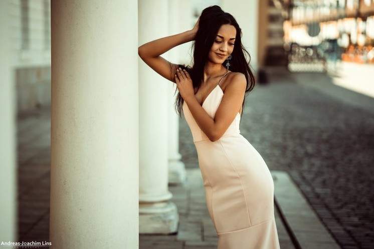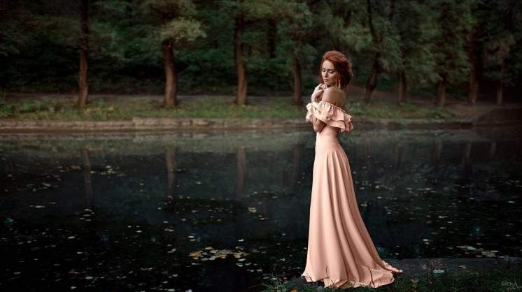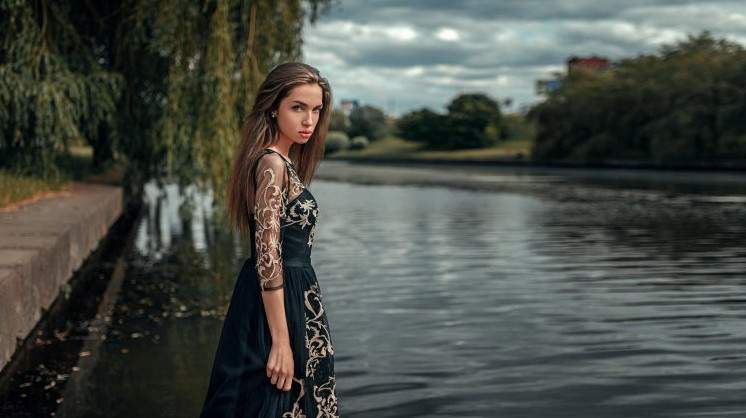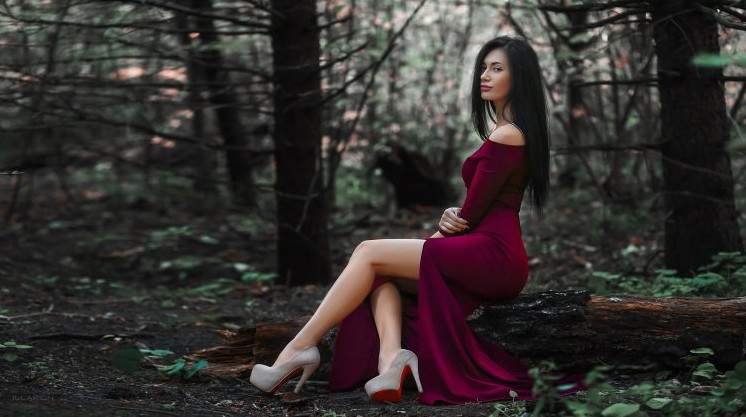 Эротика с брюнеткой в чудесном прекрасное платье.