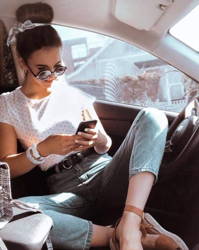 Галинка Миргаева в машине.