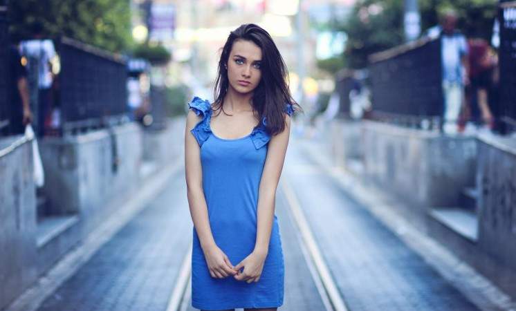 Эда Йылдыз в голубом прекрасное платье.