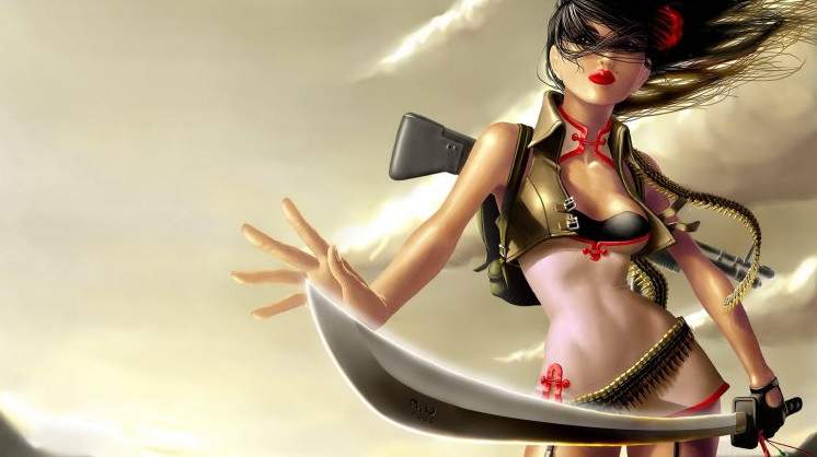 Фэнтези восхитительные женщины с орудием.