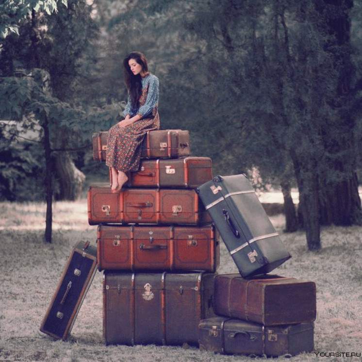 Фотосессия с чемоданом девушка.