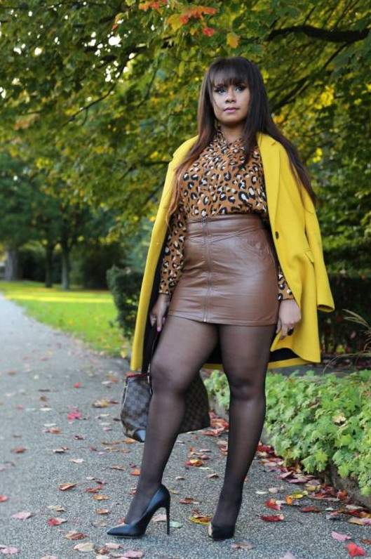Упитанная прелестная красивая женщина в мини.