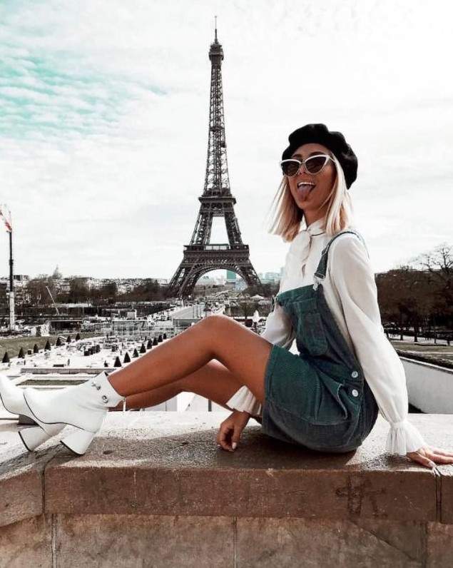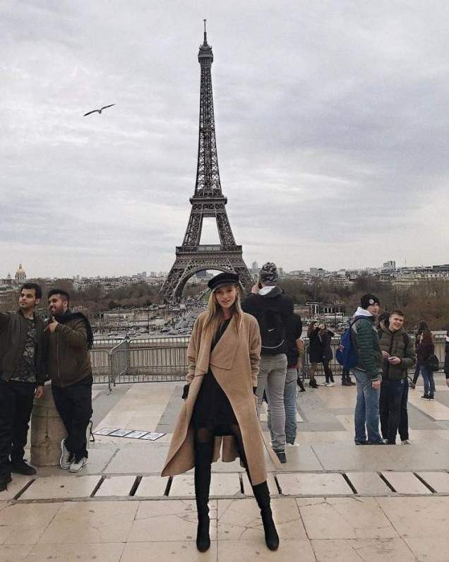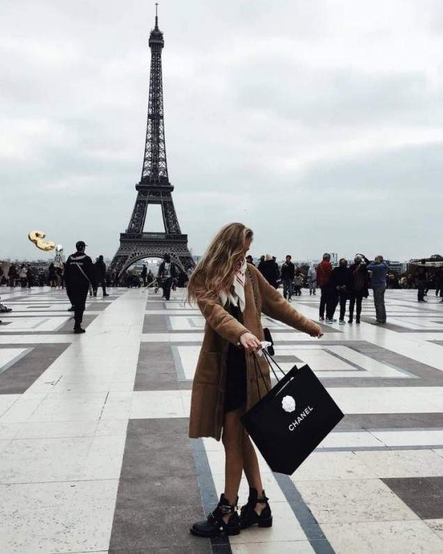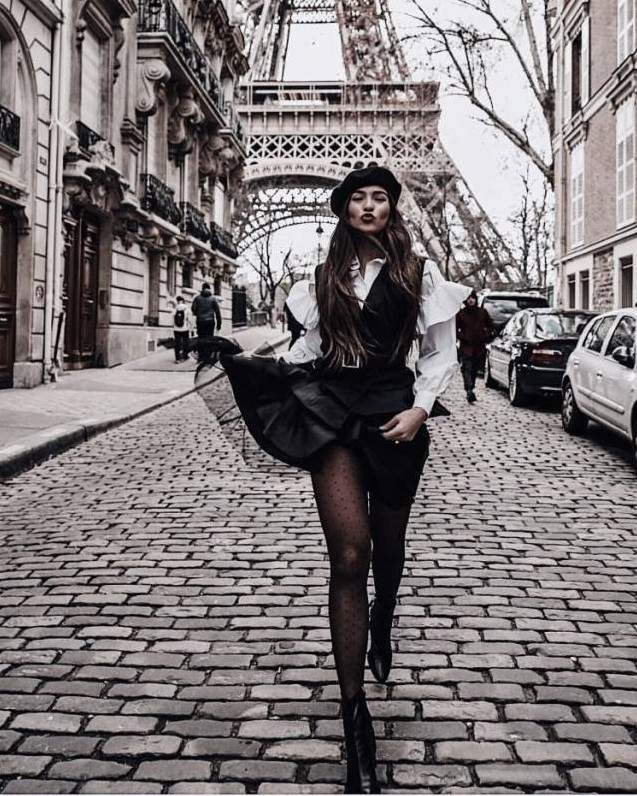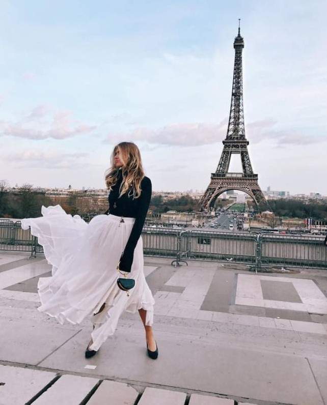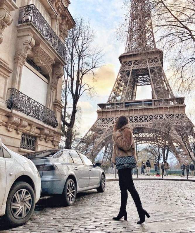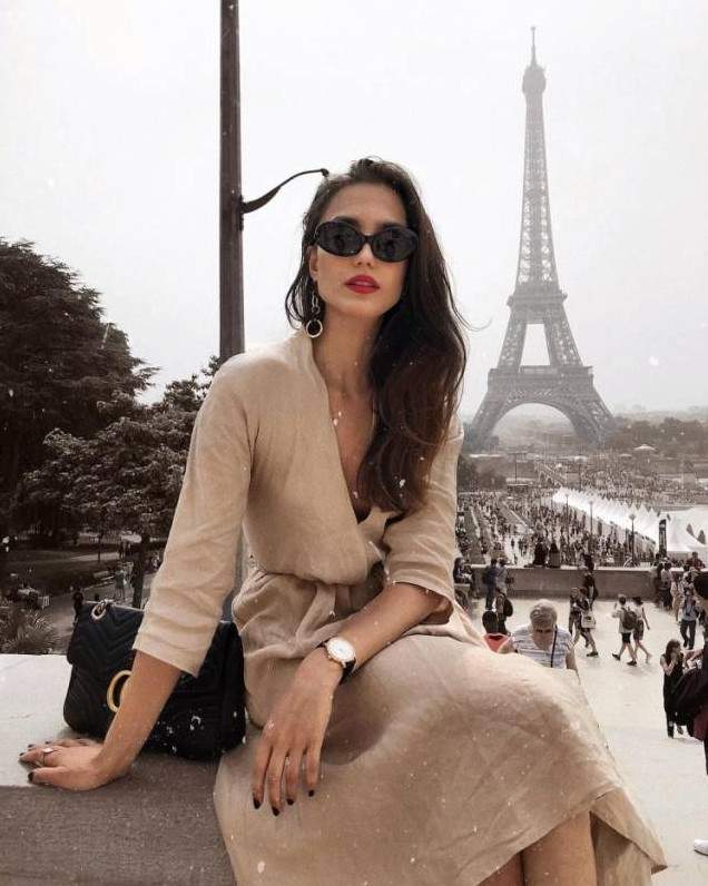 Тина Канделаки на фоне Эйфелевой башни в Париже.