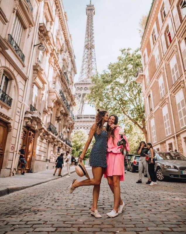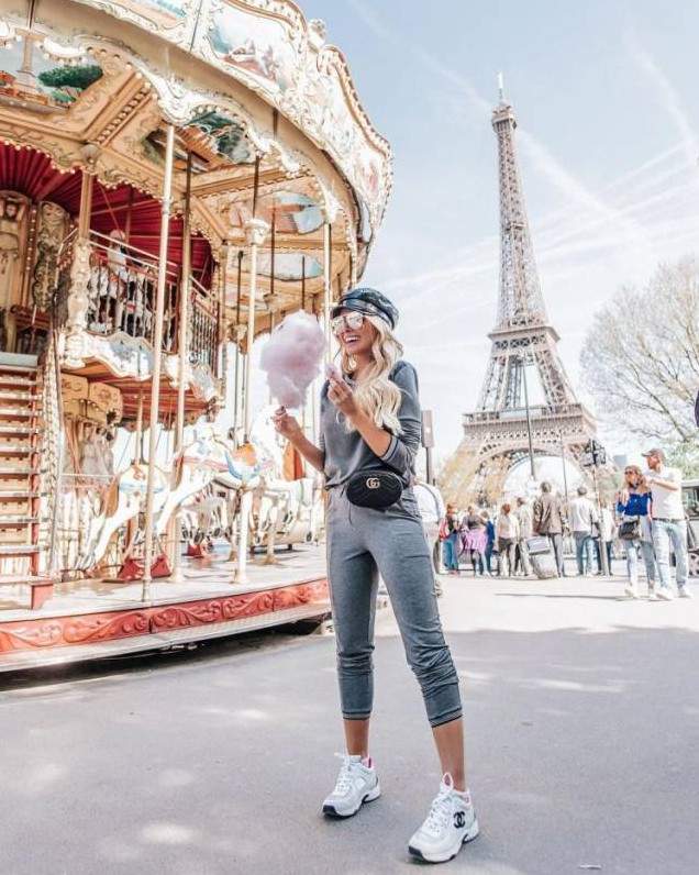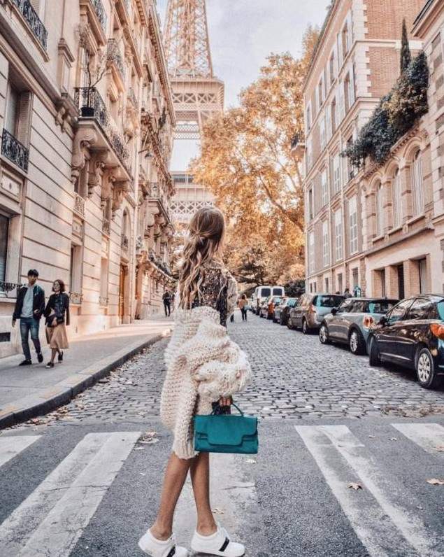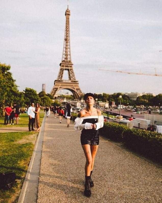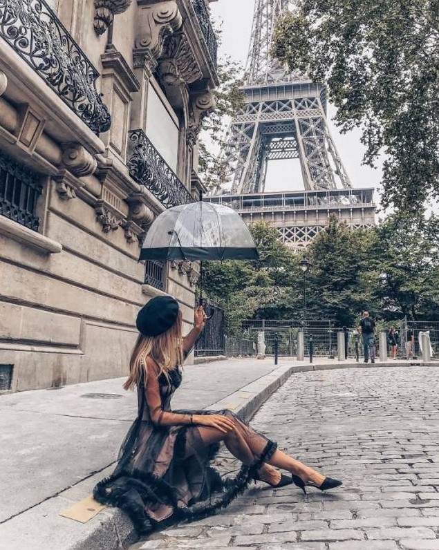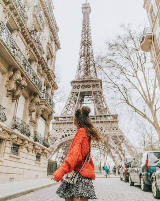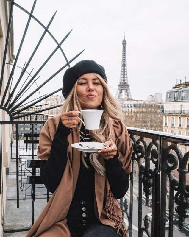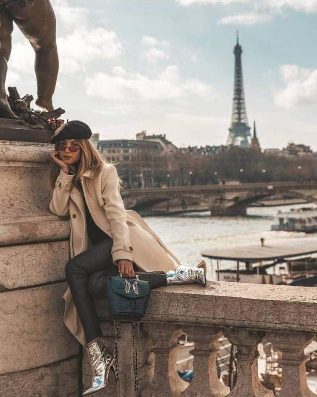Тина Канделаки на фоне Эйфелевой башни в Париже.