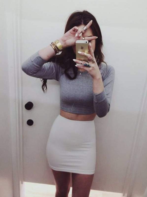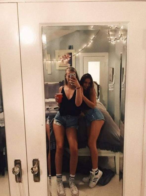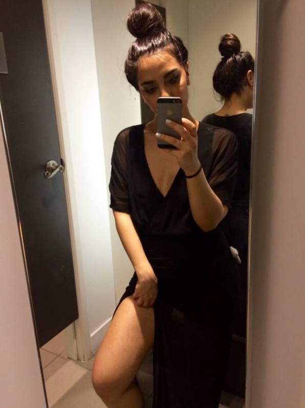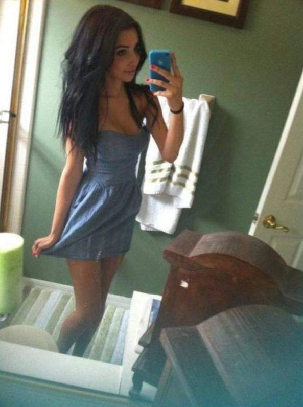 Красивая девушка в прекрасное платье селфи в зеркале.