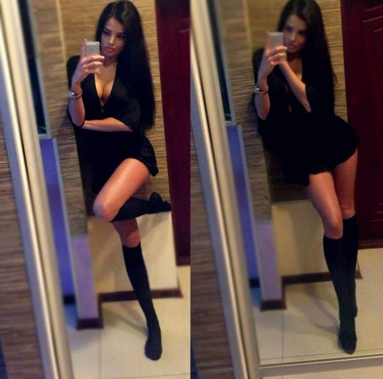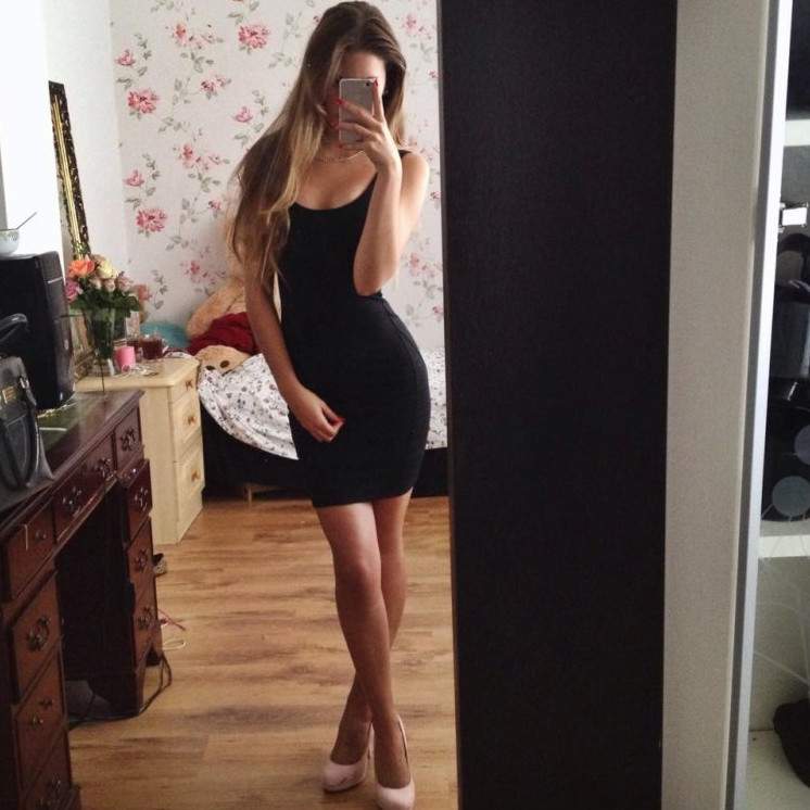 Красивая девушка в небольшом облегающем прекрасное платье.