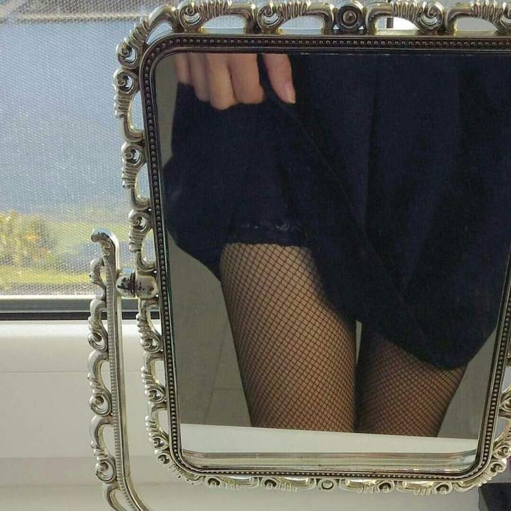 Красивая девушка в прекрасное платье в зеркале без лица.