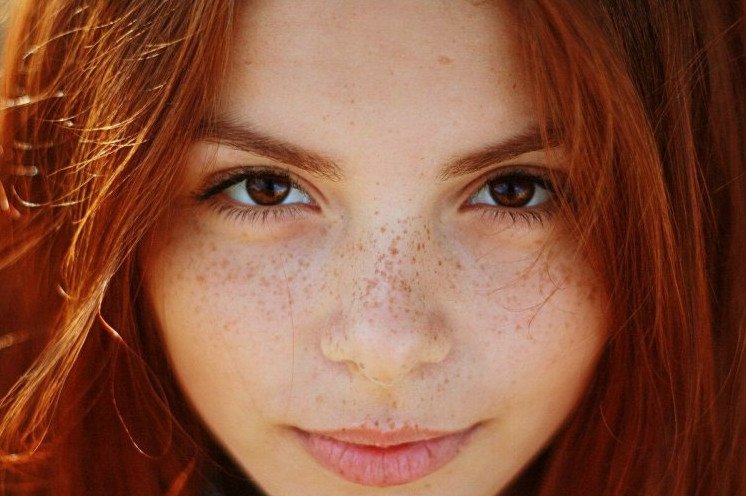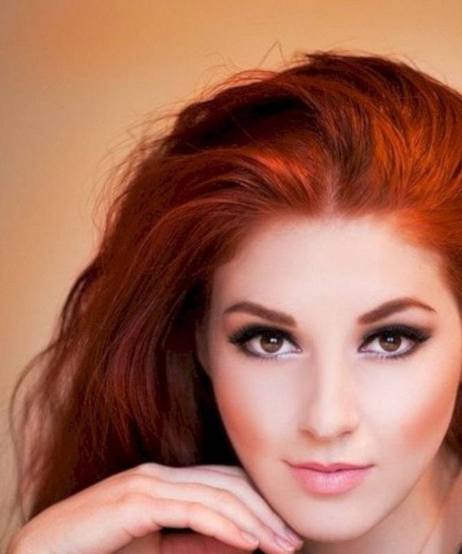 Рыжеватый цвет волос с карими глазами и смуглой кожей.